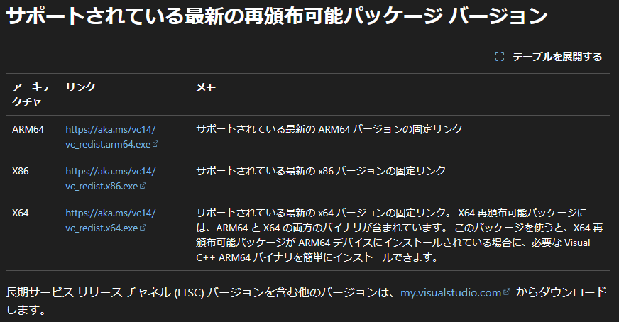 https://learn.microsoft.com/ja-jp/cpp/windows/latest-supported-vc-redist